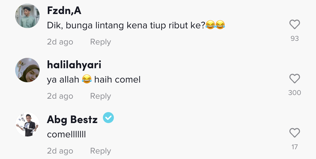 "Dik, bunga lintang kena tiup ribut ke?" – Netizen