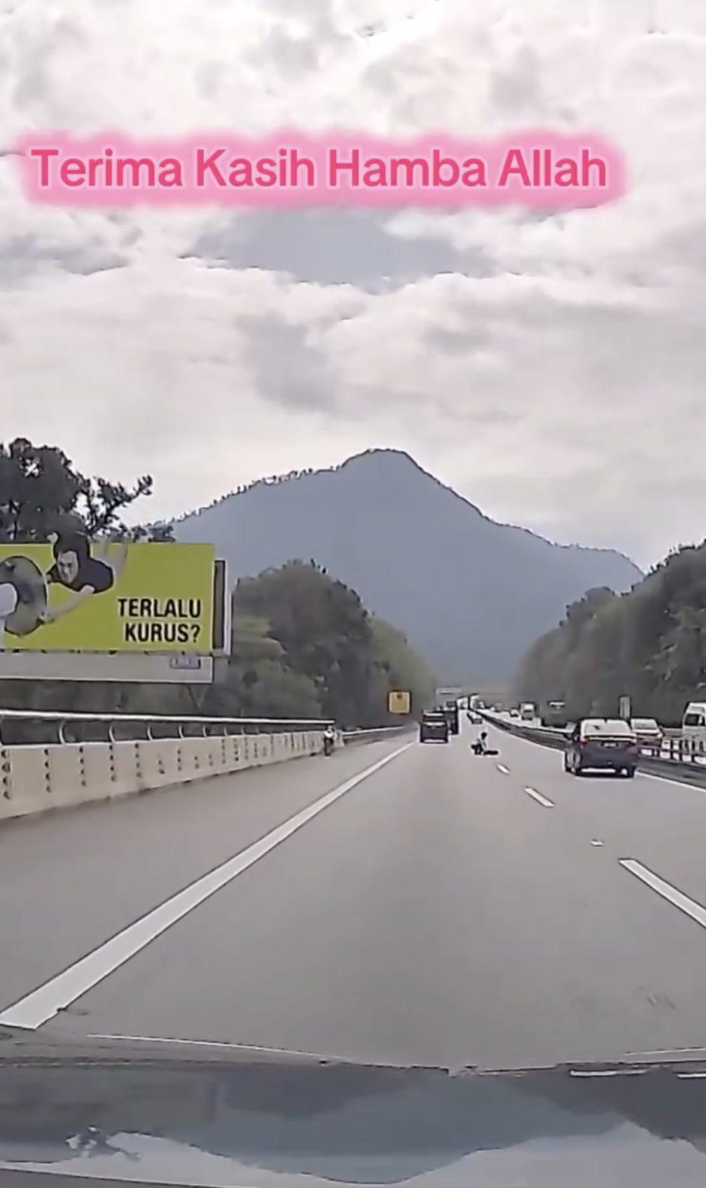 Menerusi perkongsian di laman X, kelihatan rakaman dashcam menunjukkan pada ketika itu pemandu sedang berada di sebuah lebuh raya.