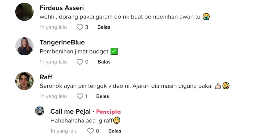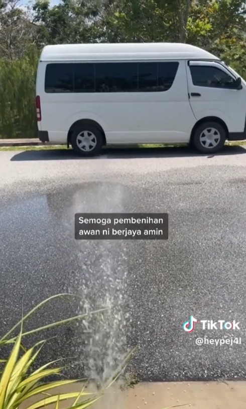 Menerusi video yang dimuat naik oleh @fdzyy03 di TikTok, kelihatan seorang individu sedang berkongsi cara pembenihan awam untuk menurunkan hujan di kawasan rumahnya.