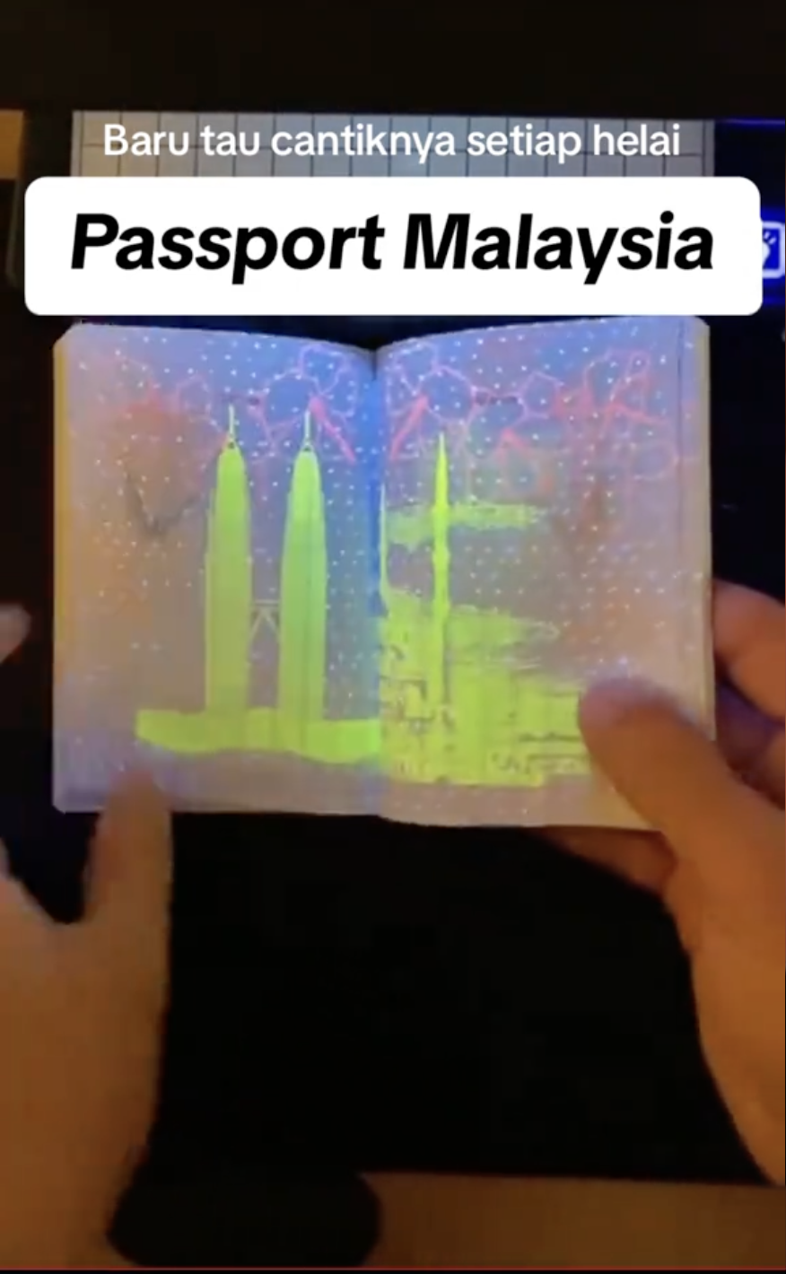 Menerusi video di TikTok @bahjahhabil, seorang wanita berkongsi kecantikan helaian pasport Malaysia di bawah sinaran UV.