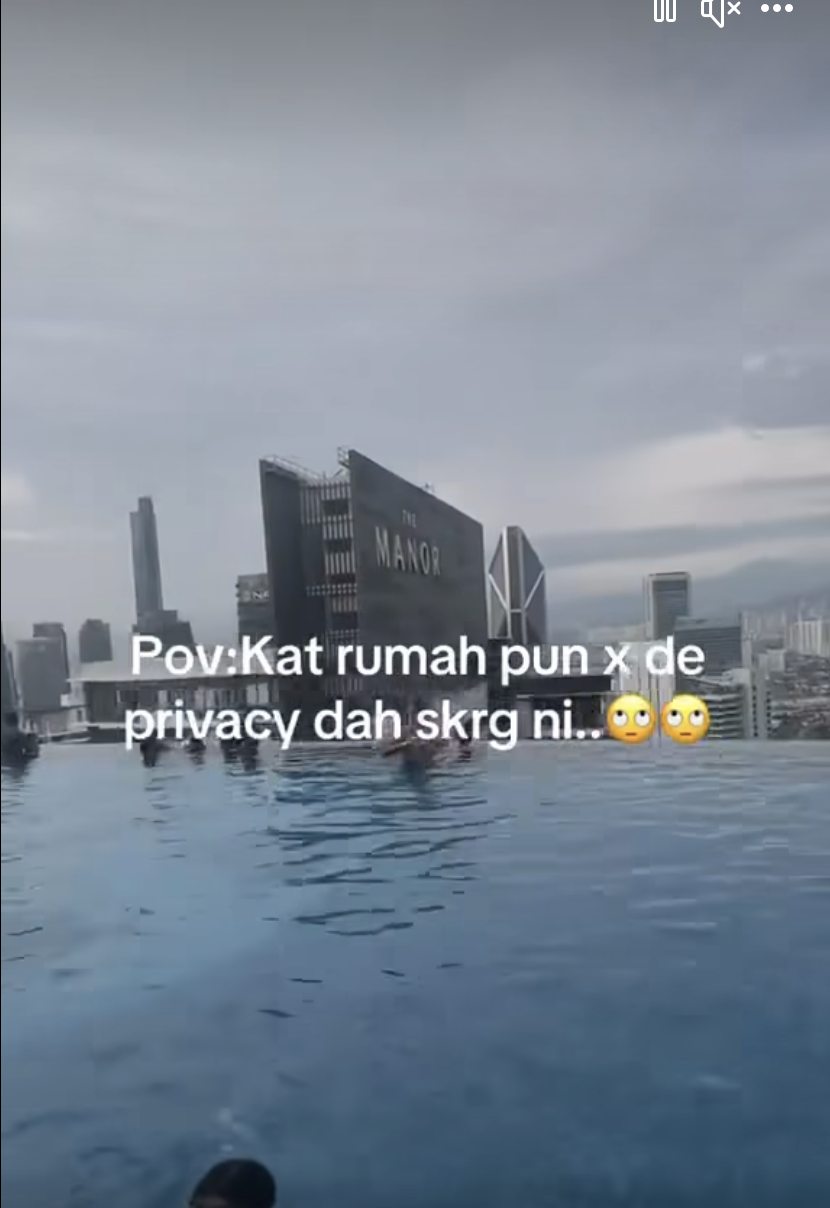 Di dalam video berkenaan, wanita tersebut merakam keadaan ketika di kolam renang yang dipenuhi orang ramai yang sedang bermandi-manda.