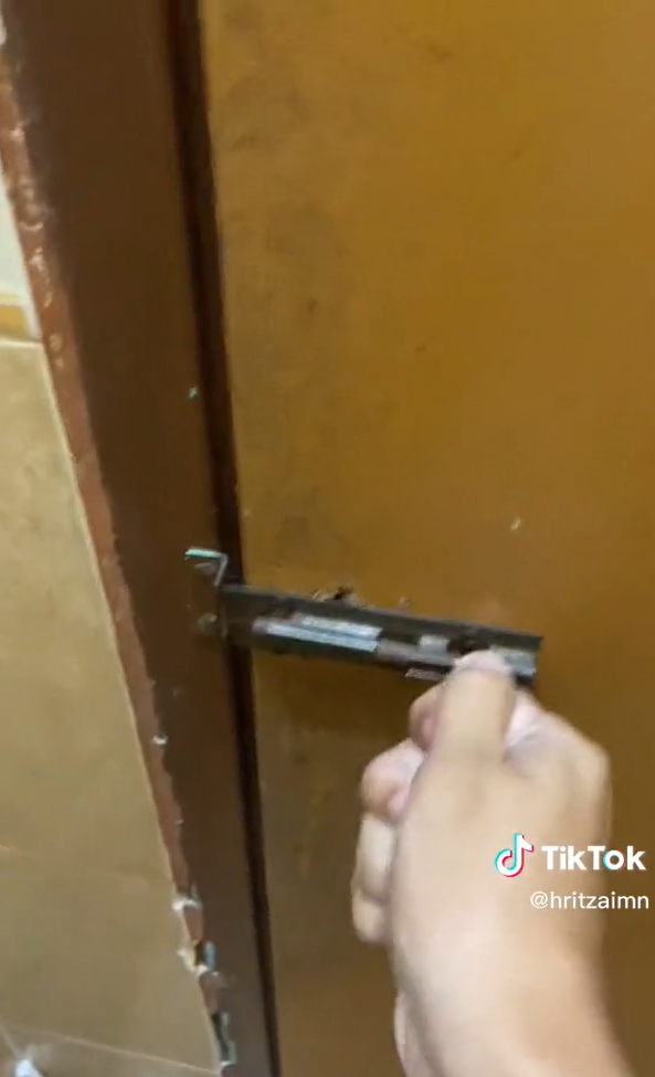 Menerusi video yang dimuat naik oleh @hritzaimn, kelihatan seorang individu telah merakam dirinya yang terperangkap di dalam tandas.