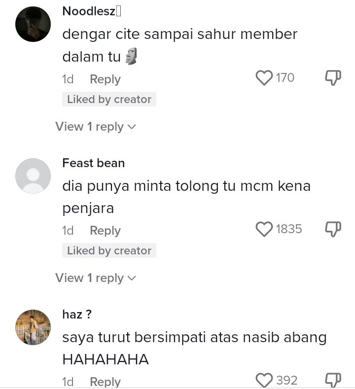 Berikut di bawah merupakan antara komen menarik daripada netizen di TikTok: