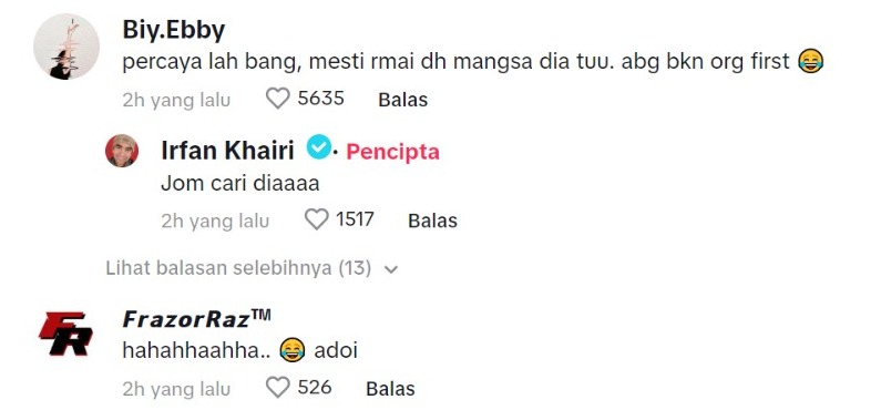 Berikut di bawah merupakan antara komen menarik daripada netizen di TikTok: