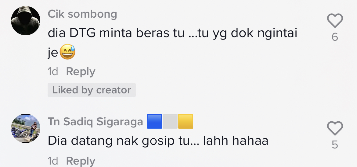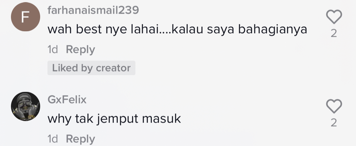 Berikut di bawah adalah antara komen menarik daripada netizen di TikTok:
