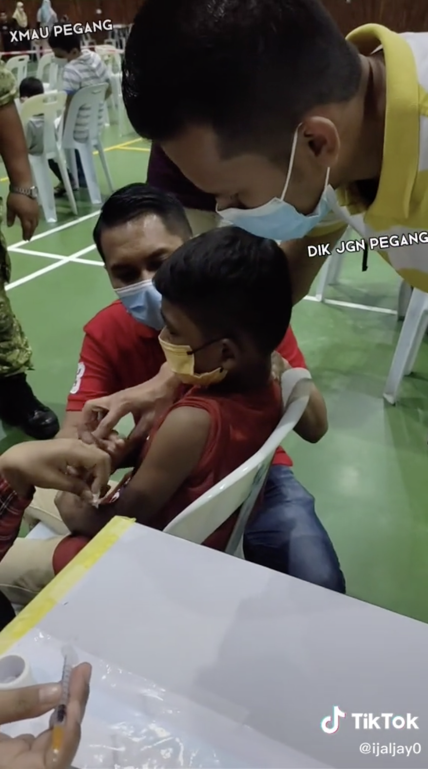 Sama seperti video yang tular ini apabila gelagat seorang budak lelaki takut untuk mendapat suntikan vaksin telah mencuri tumpuan ramai.