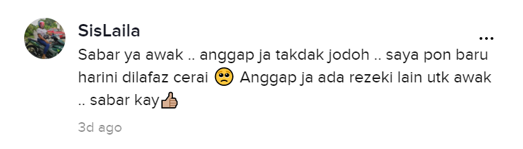 Dalam pada itu, tinjauan di ruangan komen mendapati rata-rata netizen turut memberikan kata-kata semangat dan memahami kesakitan itu