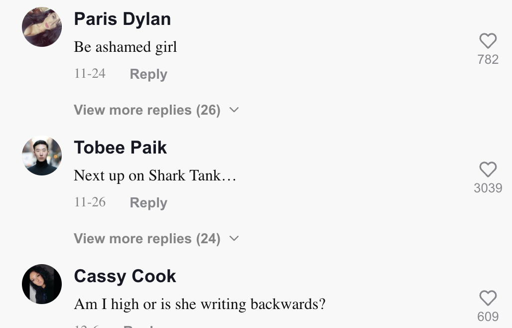 Berikut di bawah adalah antara komen daripada warganet di TikTok: