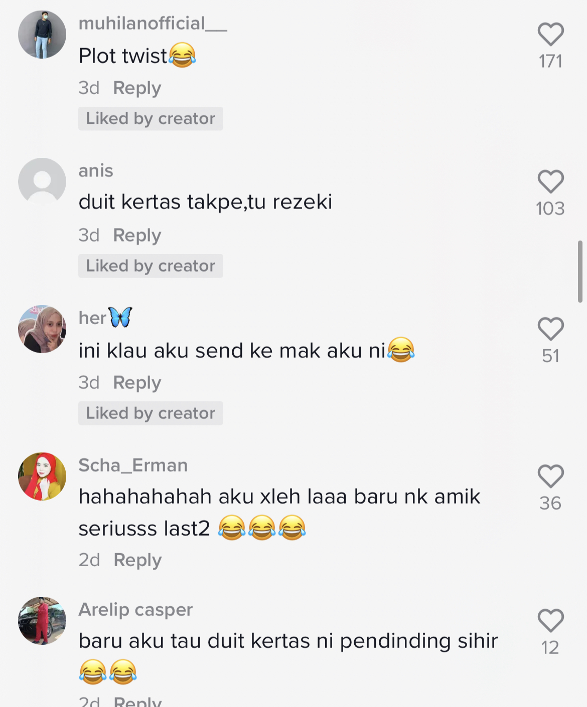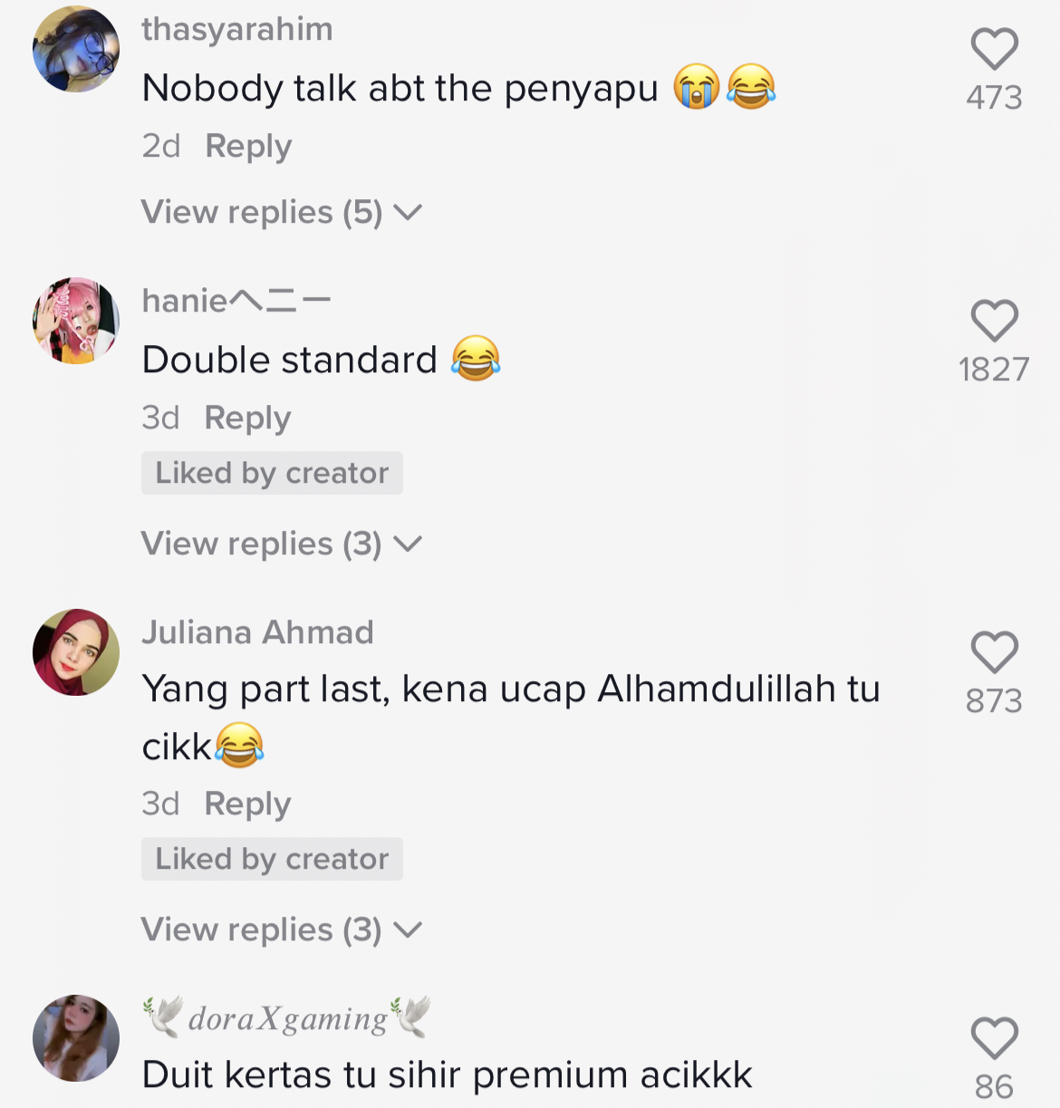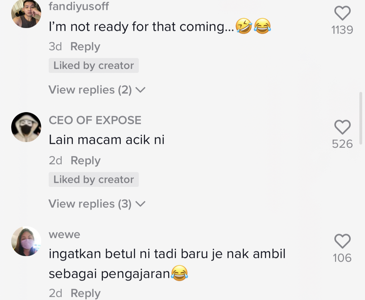 Berikut di bawah adalah antara komen menarik daripada netizen di TikTok: