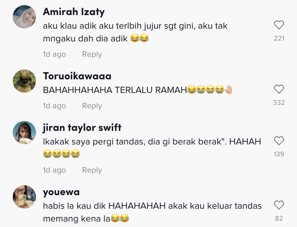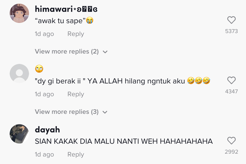 Berikut di bawah adalah antara komen menarik daripada netizen di TikTok: