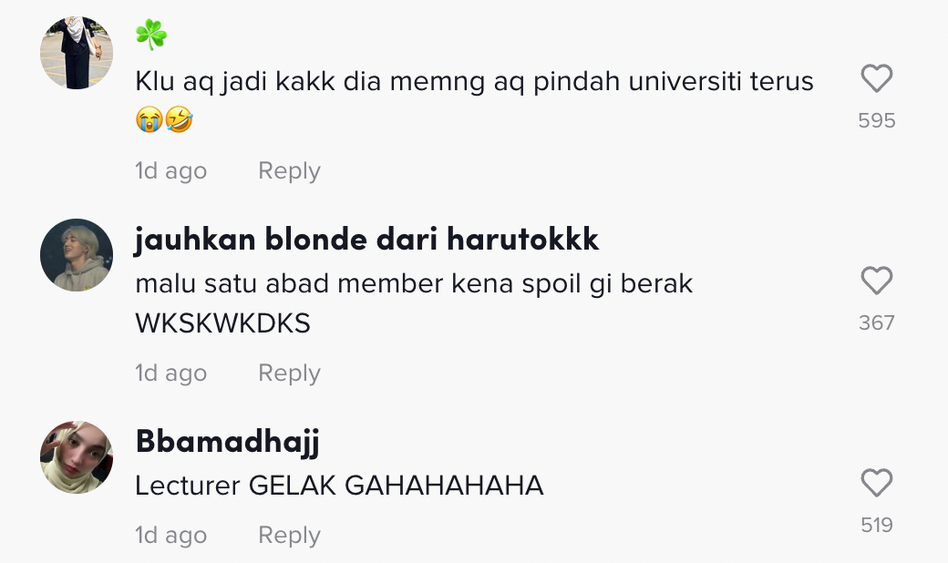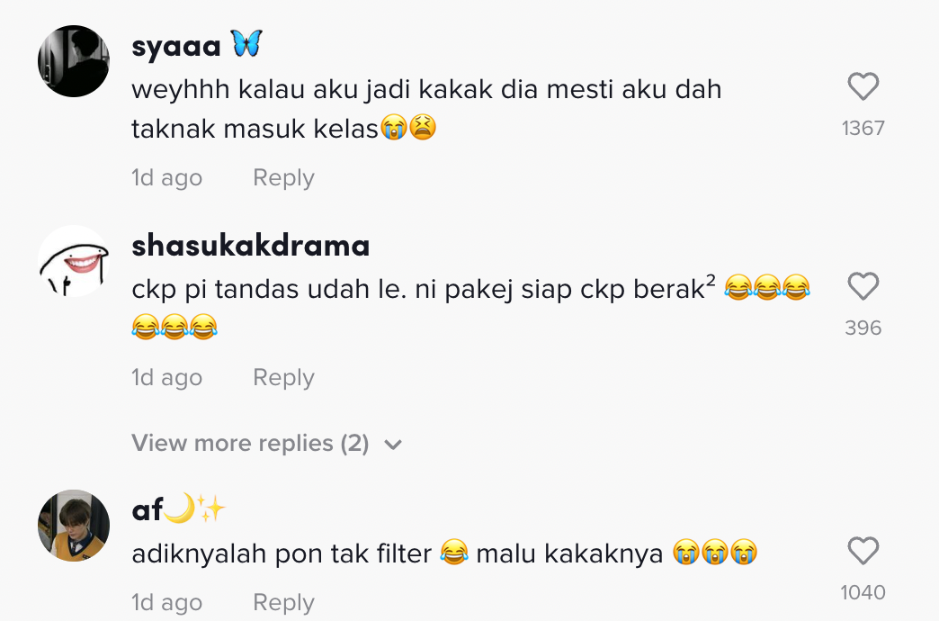 "Weh, kalau aku jadi kakak dia mesti aku dah tak nak masuk kelas" – Netizen