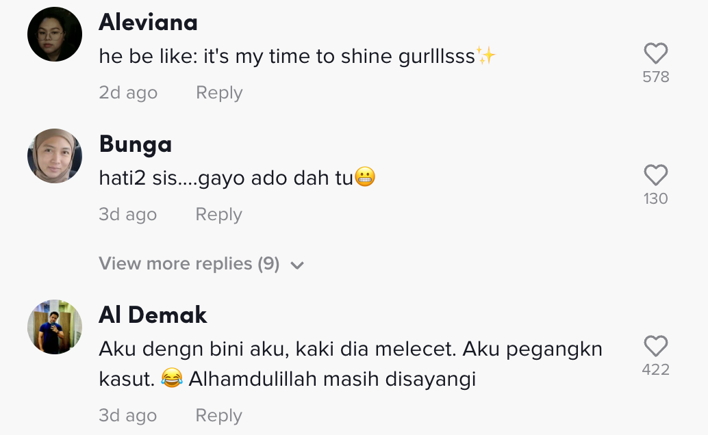 Berikut di bawah adalah antara komen daripada netizen di TikTok: