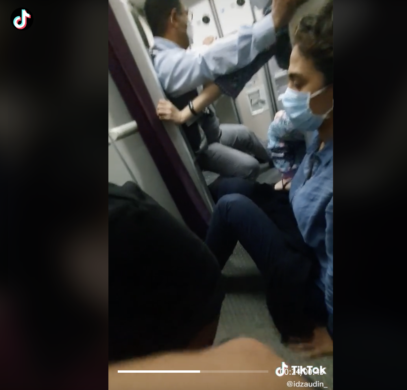 Apa yang mencuit hati warganet adalah, mereka terpaksa duduk di atas lantai kapal terbang dan berpaut pada pintu tandas.