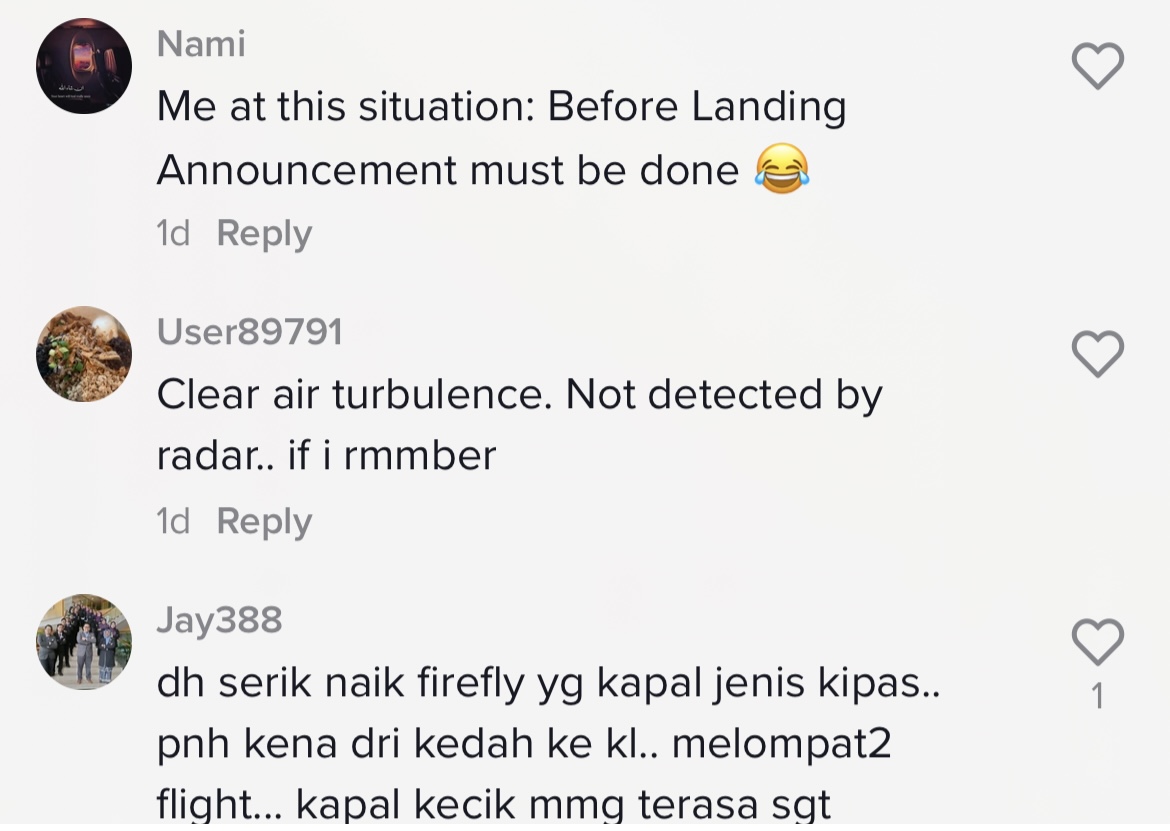 Kebiasaanya apabila turbulence berlaku, penumpang pasti akan kekal berada di tempat duduk masing-masing dan memakai tali pinggang keledar.