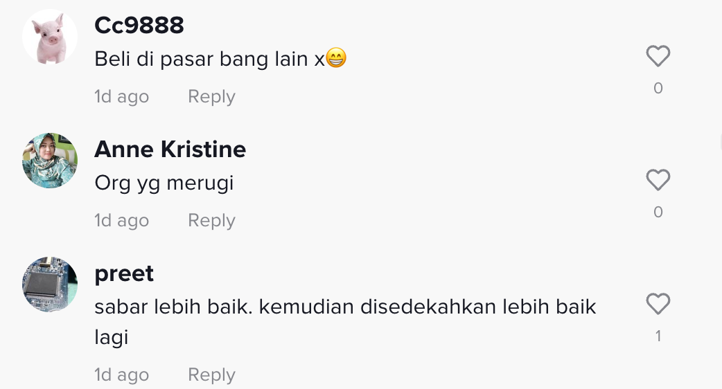 Berikut di bawah adalah antara komen daripada netizen di TikTok: