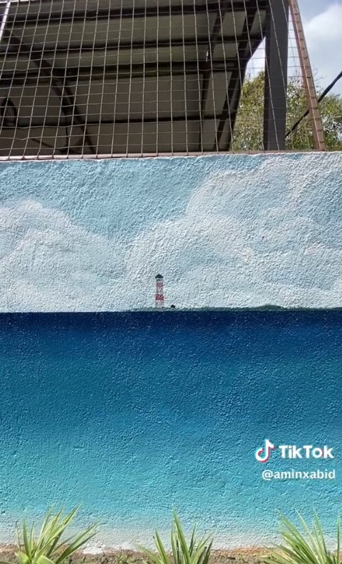 Mereka dilihat berusaha keras dan tidak berputus asa mengecatnya walaupun ketika itu matahari membahang panas. Dua beradik kembar tersebut iaitu Amin dan Abid juga dilihat melukis dinding berkenaan supaya kelihatan seperti pemandangan pantai.
