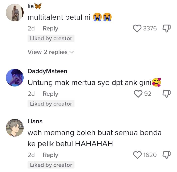 Dalam pada itu, tinjauan di ruangan komen mendapati rata-rata netizen turut kagum dengan skill adik-beradik kembar itu yang sebelum ini telah terkenal dalam membuat konten kreatif dan ada juga yang memuji hasil karya mereka.