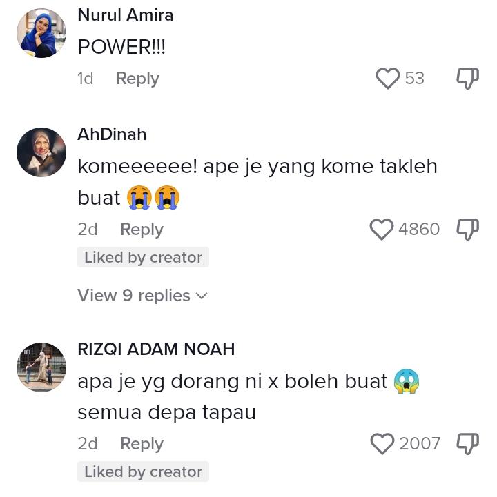 Berikut di bawah merupakan antara komen menarik daripada netizen di TikTok: