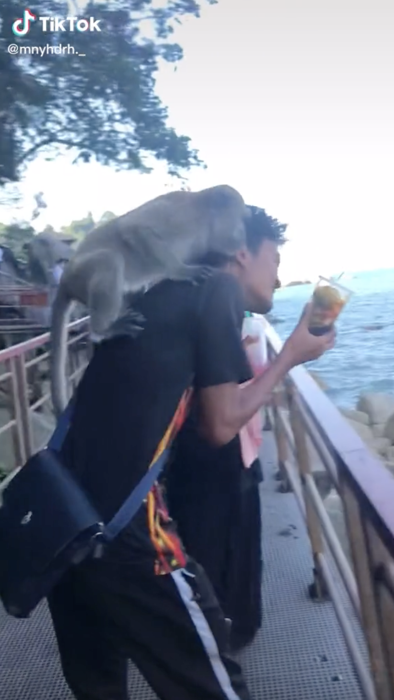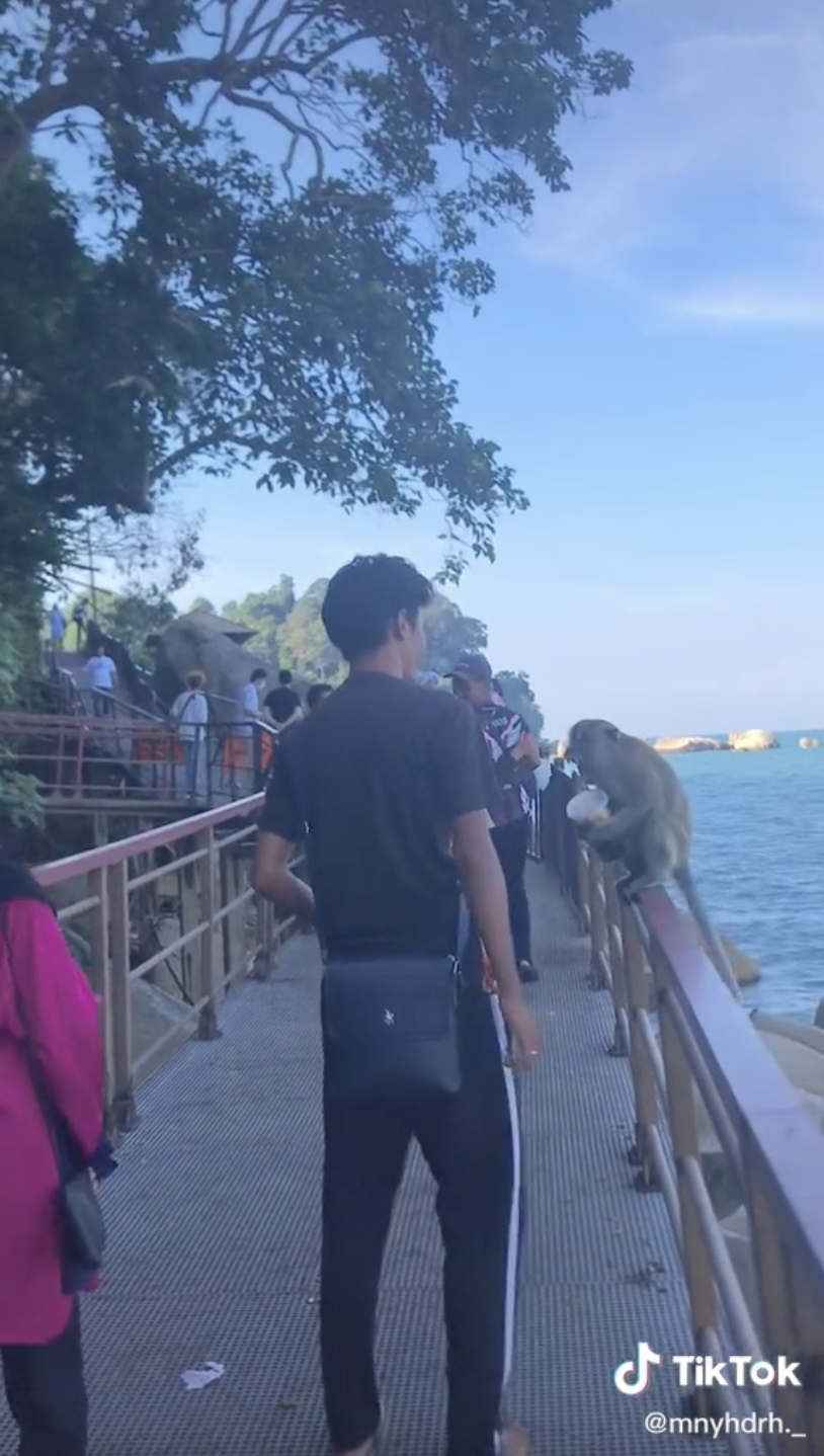 Namun, lain pula yang jadi dalam video yang tular di TikTok baru-baru ini memaparkan seekor monyet mencuri makanan yang dibawa oleh seorang lelaki di pantai ini telah menarik perhatian.