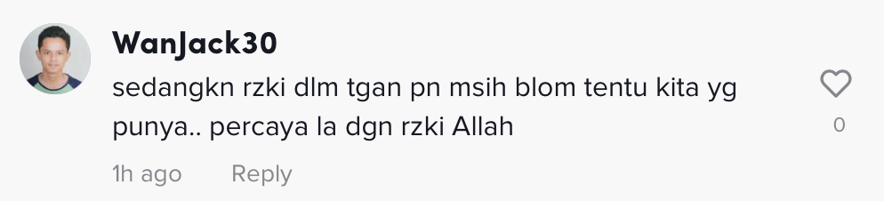 Berikut di bawah adalah antara komen menarik daripada warganet di TikTok: