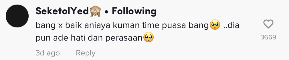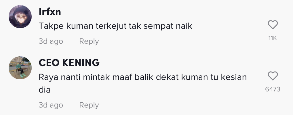 "Raya nanti minta maaf balik dekat kuman itu. Kesian dia" – Netizen