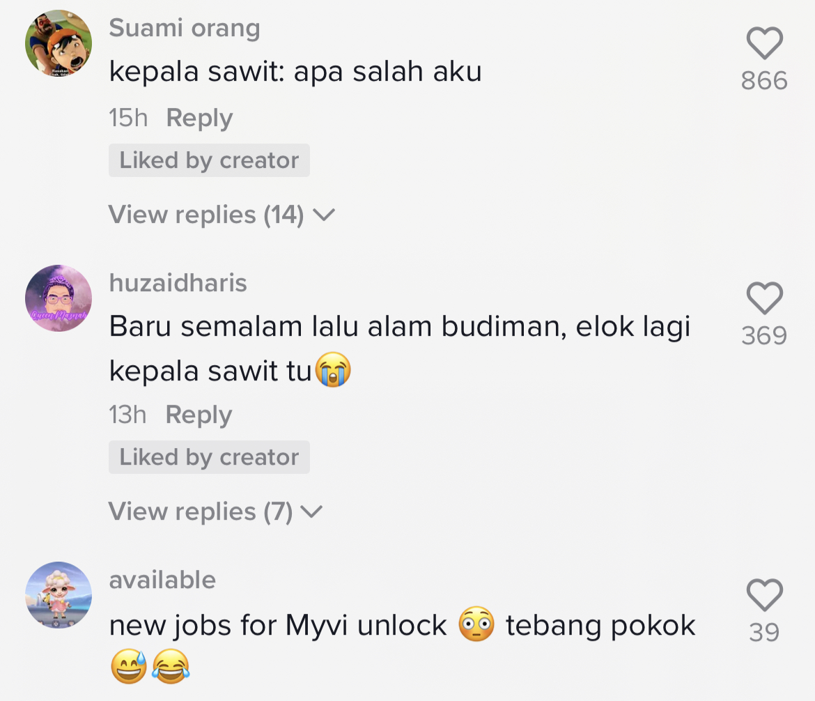 Apa lah salah pokok kelapa sawit tu kan, tiba-tiba je dah kena langgar 😀