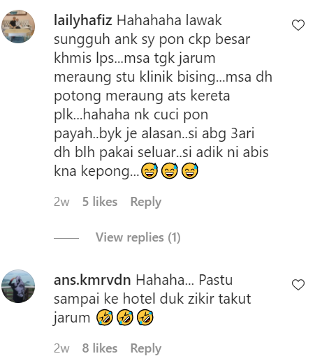 Dalam pada itu, tinjauan di ruangan komen mendapati warganet turut terhibur melihat video berkenaan dan berkongsi pengalaman masing-masing