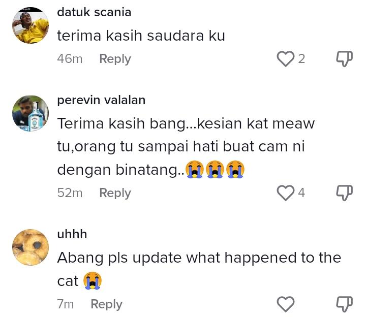 Dalam pada itu, tinjauan di ruangan komen mendapati rata-rata netizen turut berasa marah dengan tindakan yang tidak berperikemanusiaan itu dan berasa seakan-akan tidak percaya kerana ada yang sanggup melakukan seperti begitu.
