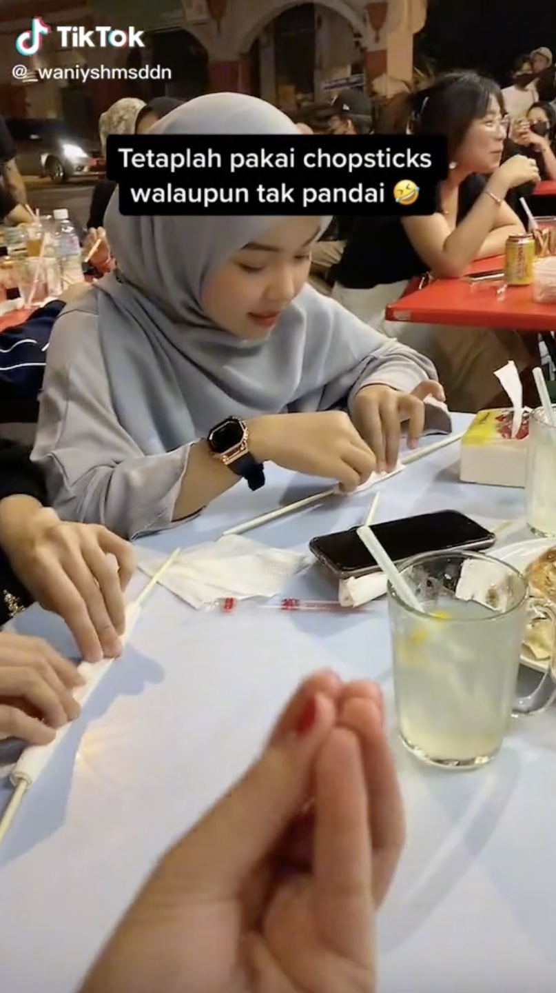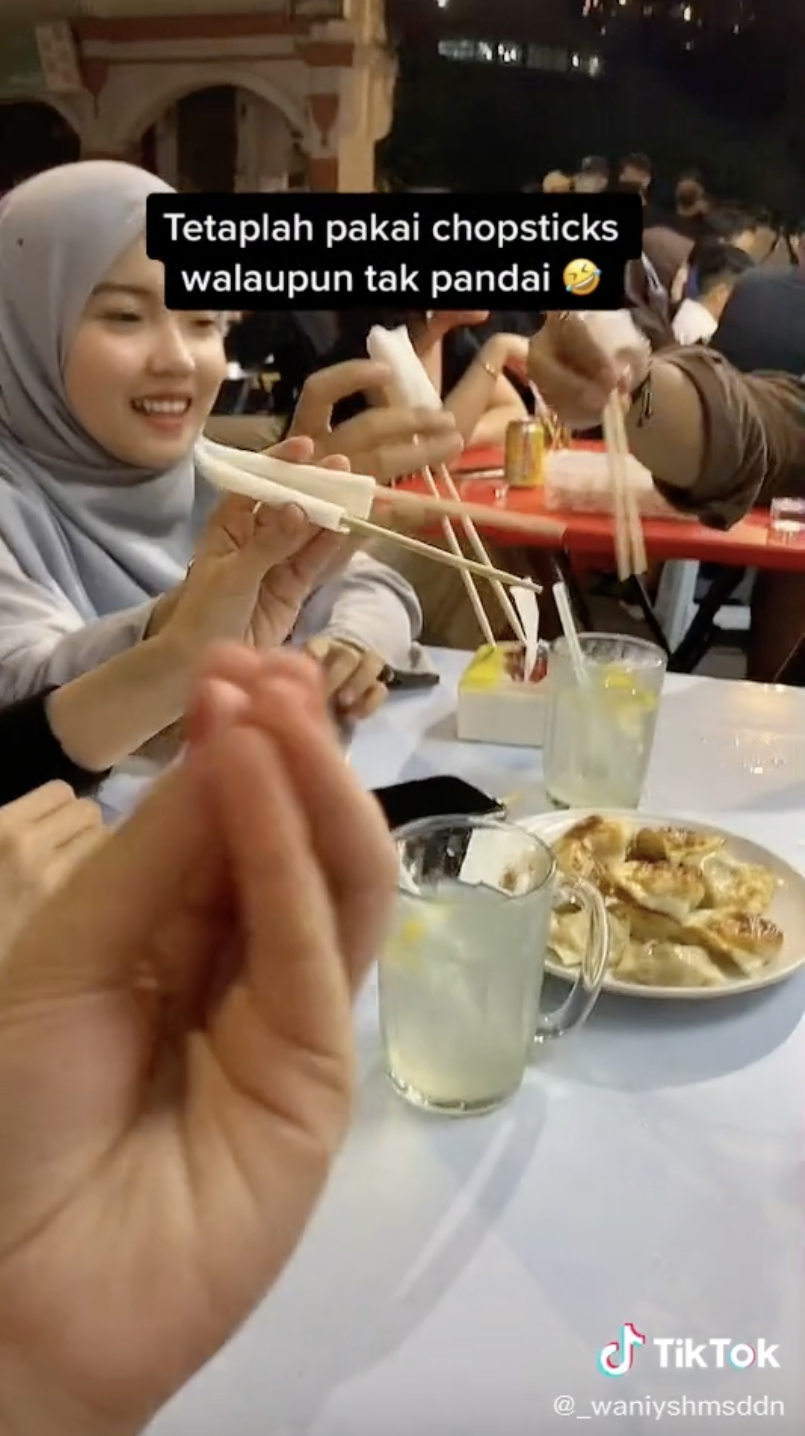 Lain pula yang berlaku dalam video yang tular baru-baru ini memaparkan sekumpulan anak muda menunjukkan cara menggunakan chopstick bagi mereka yang kurang mahir telah meraih perhatian.