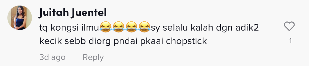 "Thank you dengan ilmu yang diberi. Selalu fail pakai chopstick" – Netizen