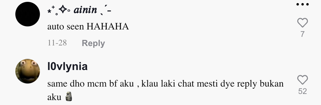 "Sama macam BF aku, kalau lelaki chat mesti dia reply bukan aku" – Netizen