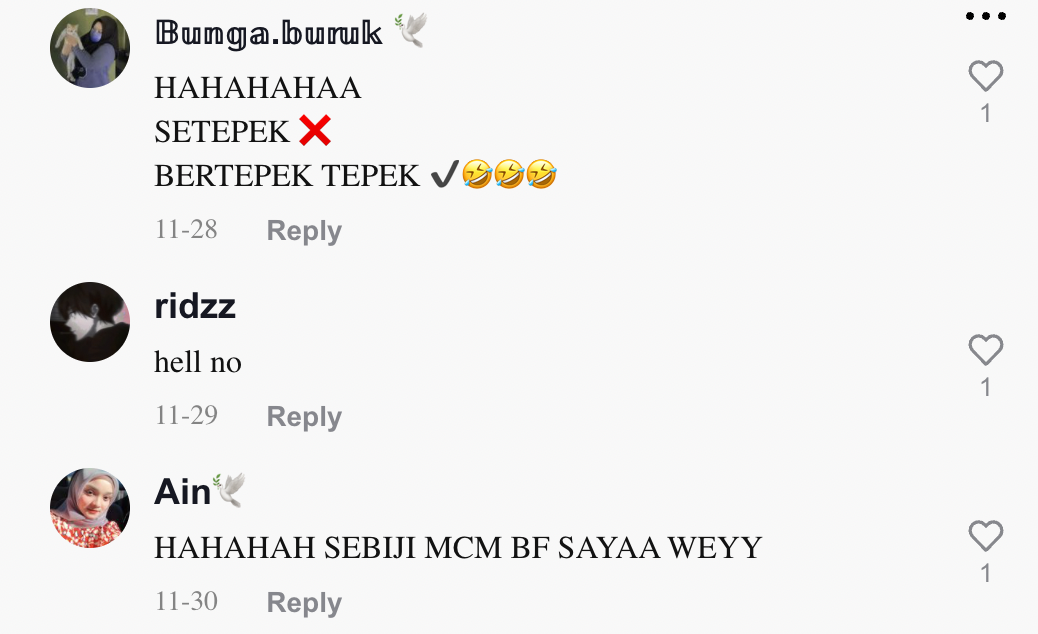 Berikut di bawah adalah antara komen menarik daripada netizen di TikTok: