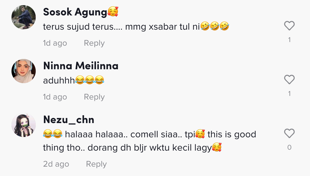 Berikut di bawah adalah antara komen menarik daripada netizen di TikTok: