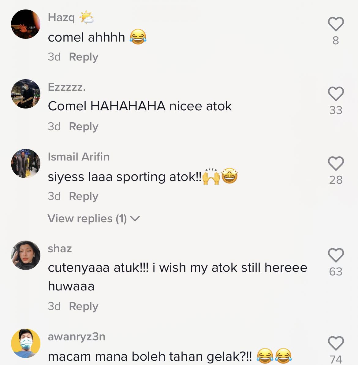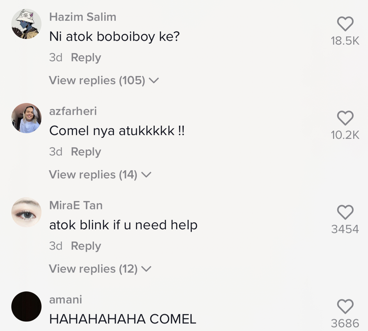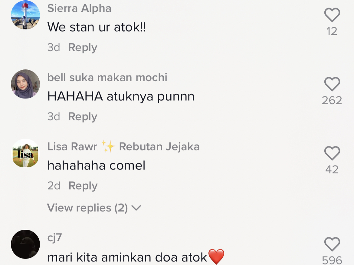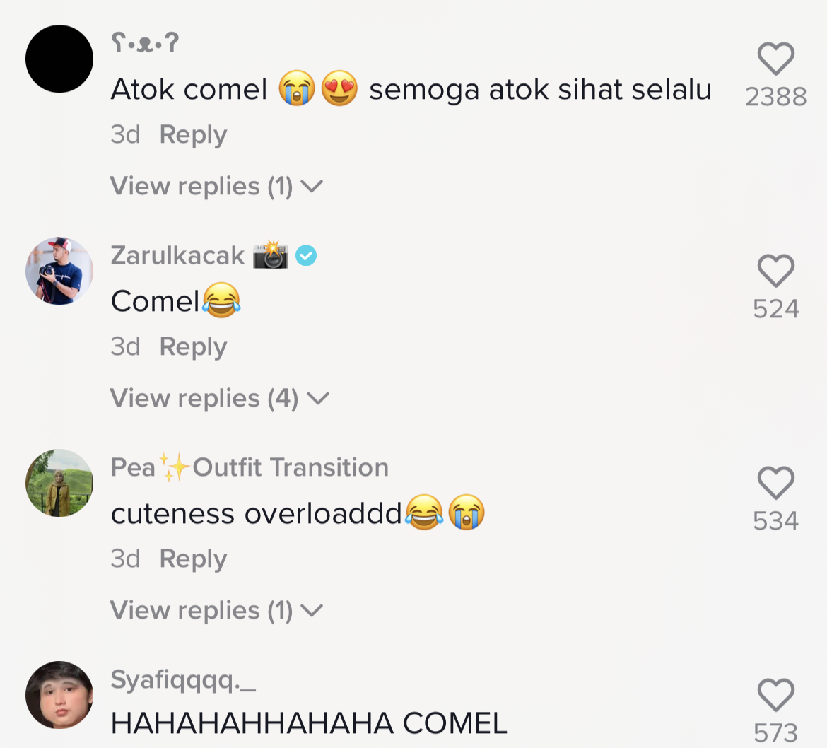Susulan tularnya video itu yang kini meraih sehingga 2.2M tontonan, 301.1K tanda suka dan 4.3K komen di TikTok, rata-rata netizen turut memuji kecomelan atuk tersebut membuat trend TikTok.