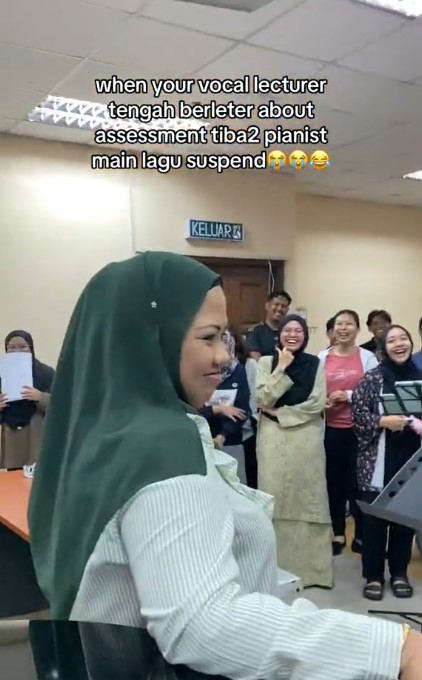 Itu yang berlaku dalam sebuah video tular di TikTok memaparkan seorang pensyarah sedang berleter kepada pelajar-pelajarnya secara tiba-tiba disusuli kesan bunyi piano.