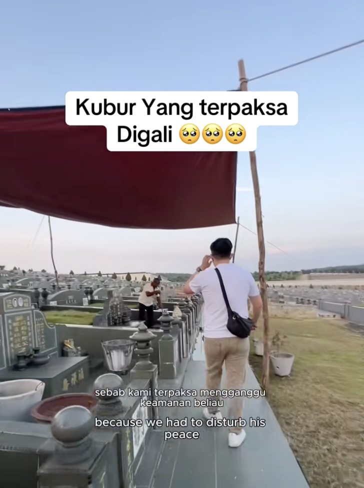 Baru-baru ini, tular sebuah video memaparkan seorang lelaki berbangsa Cina berkongsi momen ketika kubur mendiang ayahnya digali semula