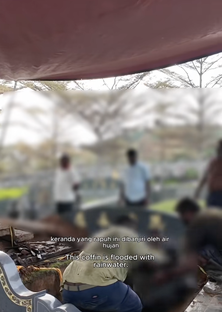 "Seperti yang dijangkakan, rangka ayah saya ditekan oleh papan keranda yang telah repuh dan disebabkan struktur perkuburan ini tidak seperti yang biasa. Ia menyebabkan rangka tulang ayah saya dibanjiri oleh air," katanya lagi.