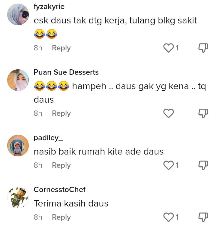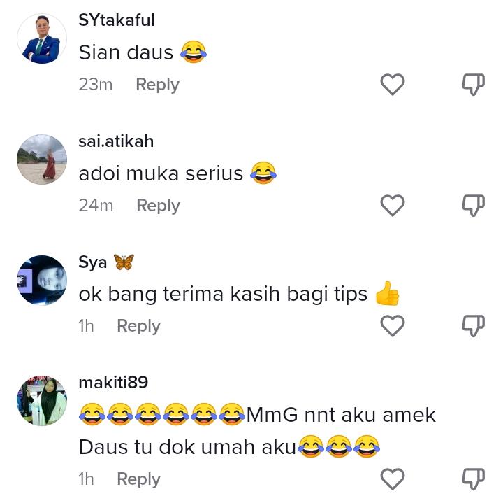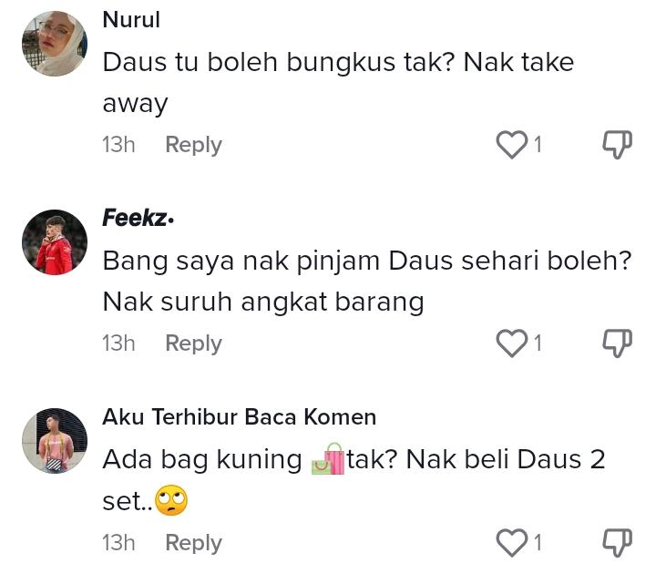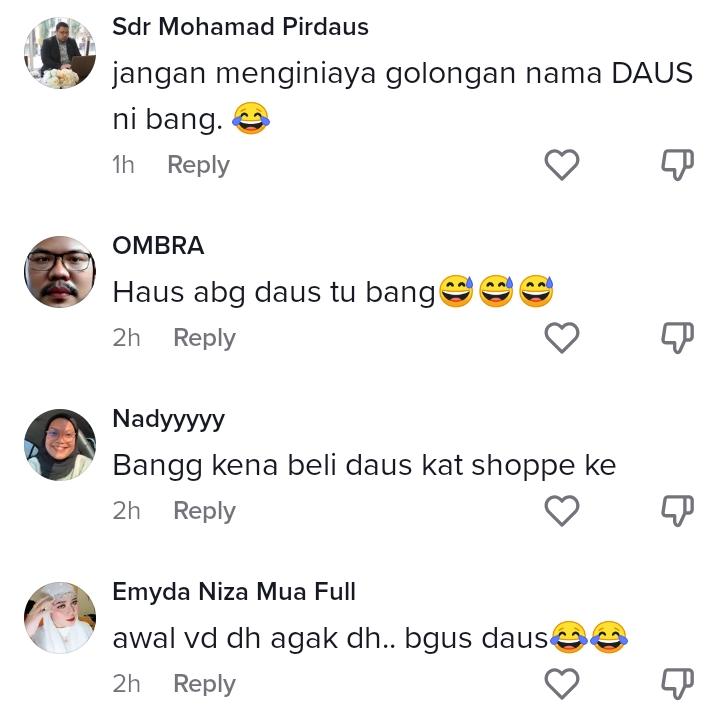Dalam pada itu, tinjauan di ruangan komen mendapati rata-rata netizen turut terhibur dengan gelagat mereka dan ada juga komen yang ingin 'order' Daus.