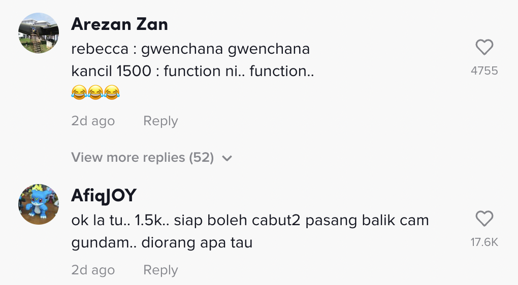 "Ok lah tu RM1.5K siap boleh cabut-cabut pasang balik macam gundam. Dia orang apa tahu" – Netizen