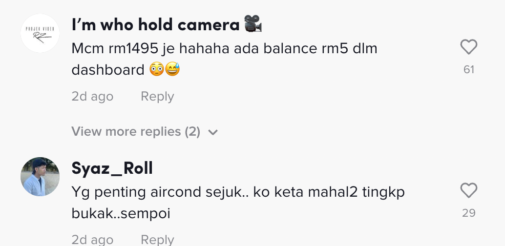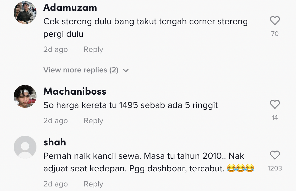 Namun, harga kereta sekarang sangat mahal dan ada yang berkira-kira duit untuk membayar bulanan kereta. Ada yang asalkan kereta apa saja sudah cukup buat mereka walaupun ia tidak mewah.