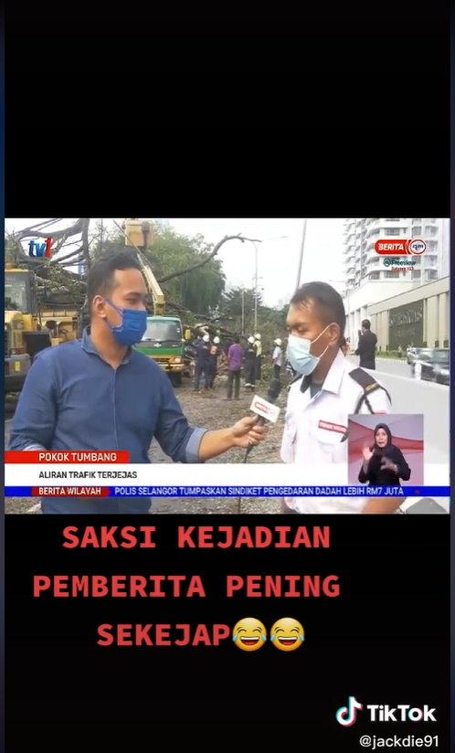 Namun, lain pula dengan video yang tular di TikTok ini apabila gelagat lucu seorang saksi kejadian semasa di temu ramah oleh wartawan mencuri tumpuan ramai.