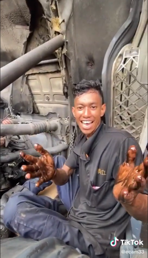Menerusi video tersebut, kelihatan seorang lelaki sedang melakukan kerjanya dengan membaiki lori di sebuah bengkel. Dia juga menunjukkan tangannya yang kotor kerana terkena minyak hitam kepada rakannya.