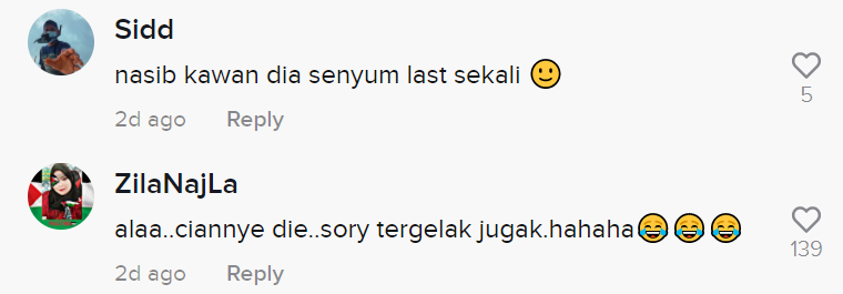 Dalam pada itu, tinjauan di ruangan komen mendapati rata-rata netizen turut terhibur melihat gelagat lelaki tersebut. Malah, ramai yang memujinya sebagai seorang yang penyabar dan sempoi melayan karenah rakannya itu.