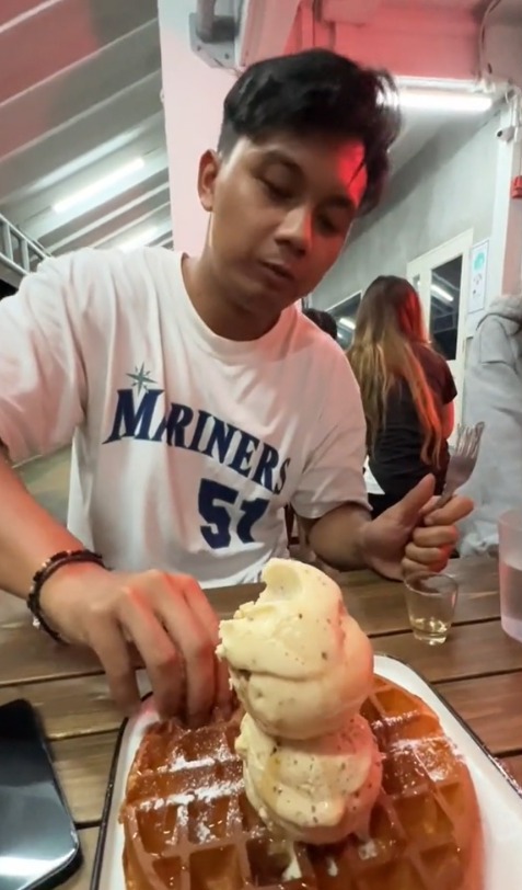Menerusi video yang dimuat naik oleh @remzyyy_ di TikTok, kelihatan seorang lelaki dirakam sedang menikmati waffle dan aiskrim vanilla di sebuah kedai makan.