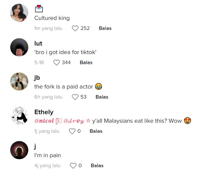 Berikut di bawah merupakan antara komen menarik daripada netizen di TikTok: