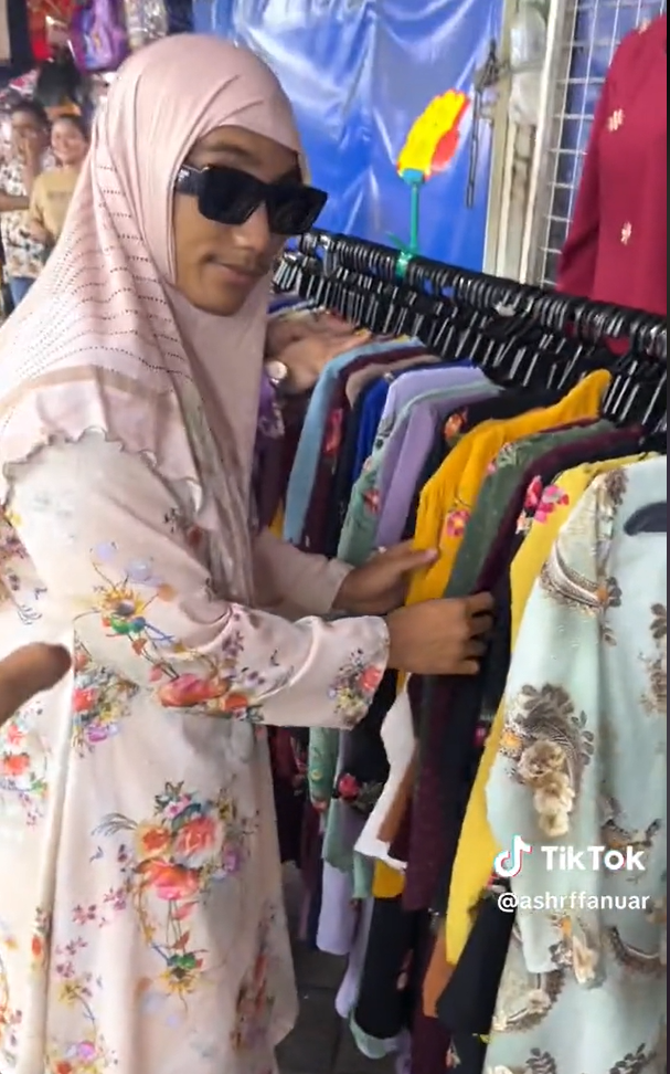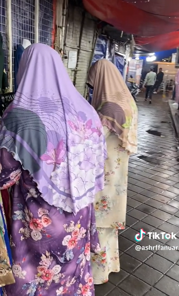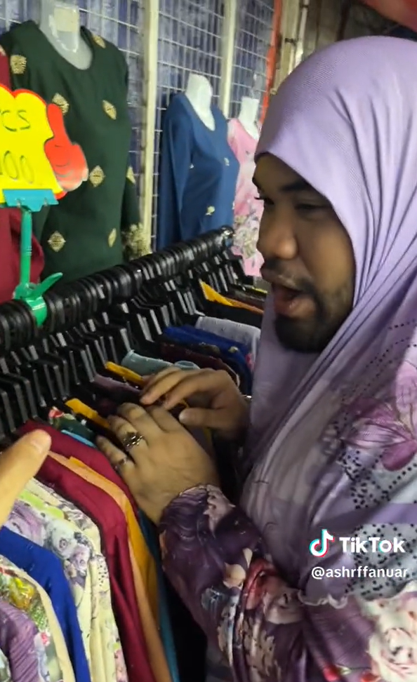 Menerusi video yang dimuat naik oleh @ashrffanuar di TikTok, kelihatan seorang individu sedang merakam dirinya berjalan-jalan untuk membeli baju kurung bagi keluarganya di bazar Jalan Tunku Abdul Rahman.