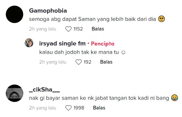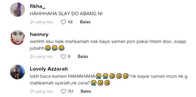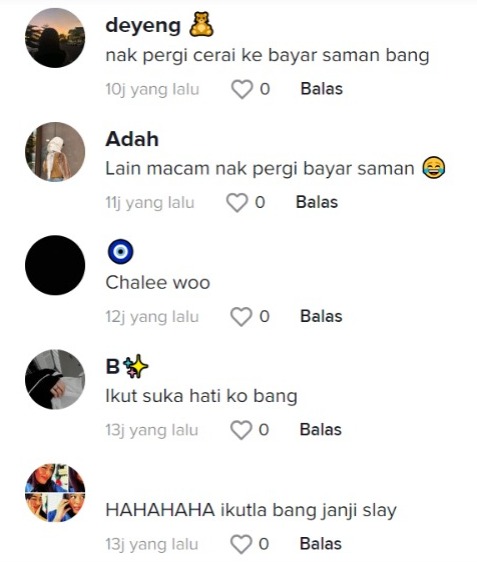 "Nak gi bayar saman macam nak pergi mahkamah nak cerai ja bang haha" – Netizen