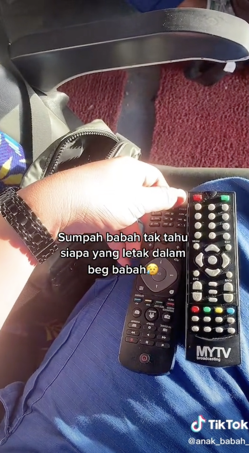 Namun, apa yang lebih menarik perhatian adalah dia kemudian membuka begnya dan terjumpa dua remote control TV.