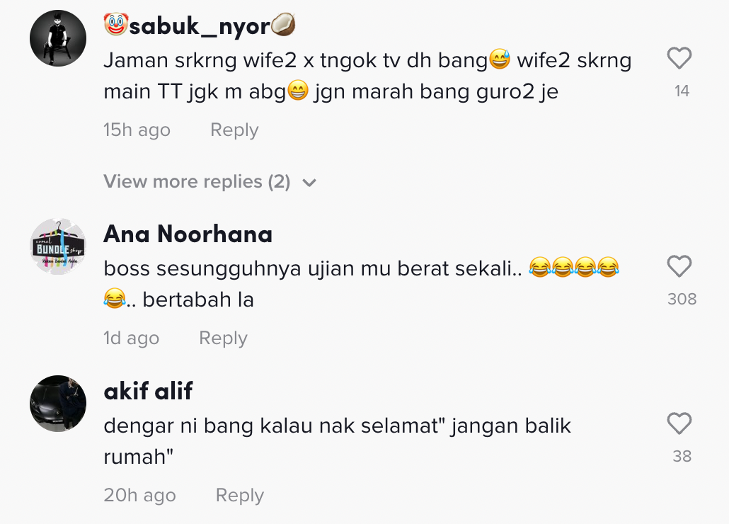 Berikut di bawah adalah antara komen menarik daripada netizen di TikTok: