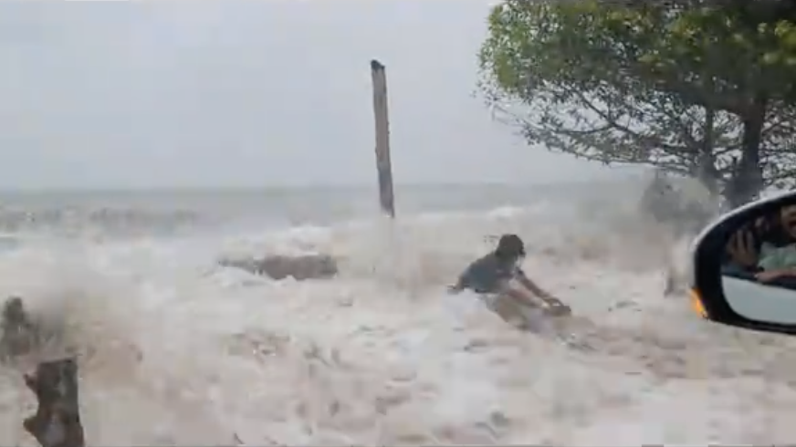 Seperti video yang tular di TikTok apabila seorang individu berkongsi hampir terkena kayu balak dek kerana ombak yang kuat.